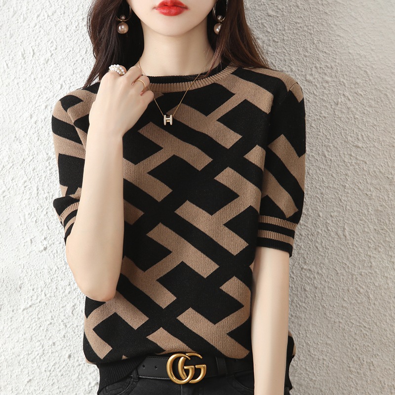 Mesh T-Shirt Woman Square-neck Long Sleeve Short Top